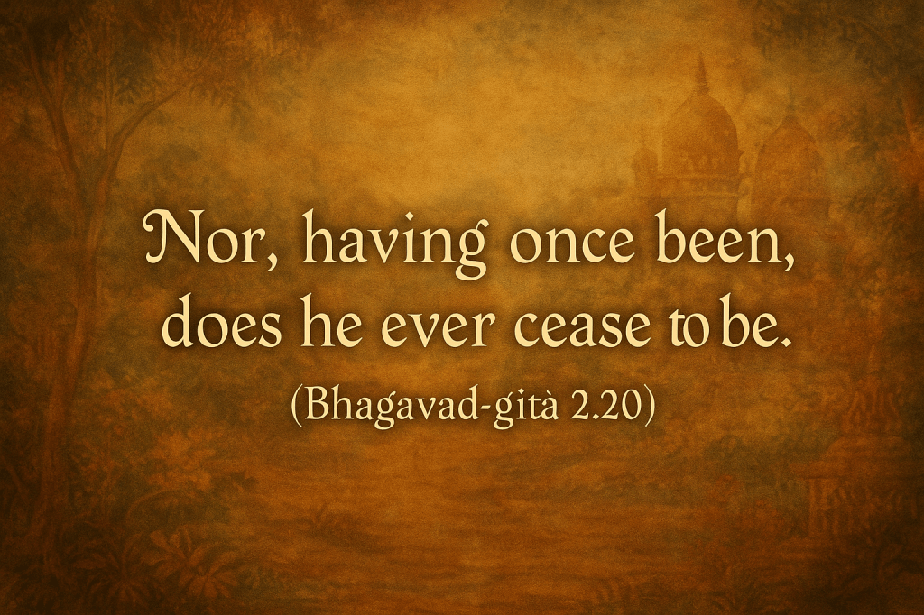 “He is never born, nor does he ever die. Nor, having once been, does he ever cease to be.” (Bhagavad-gītā 2.20)